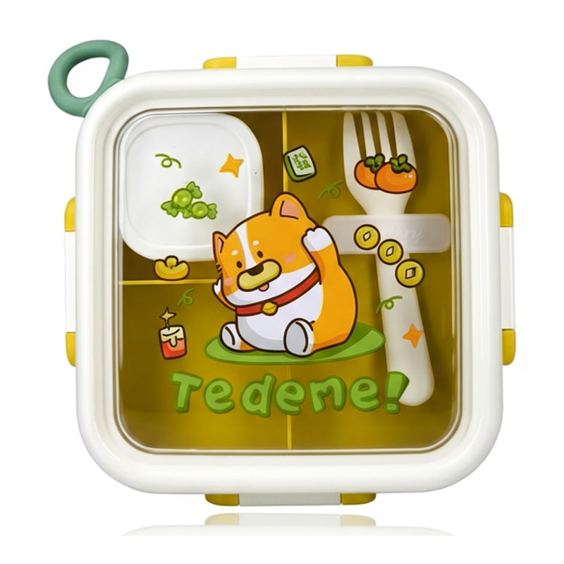 لانچ باکس فانتزی دو طبقه + چنگال با طراحی دو محفظه، مناسب برای حمل غذای روزانه در مدرسه، محل کار و سفر است. جمع‌وجور، خوش‌دست و گزینه‌ای مناسب برای هدیه.